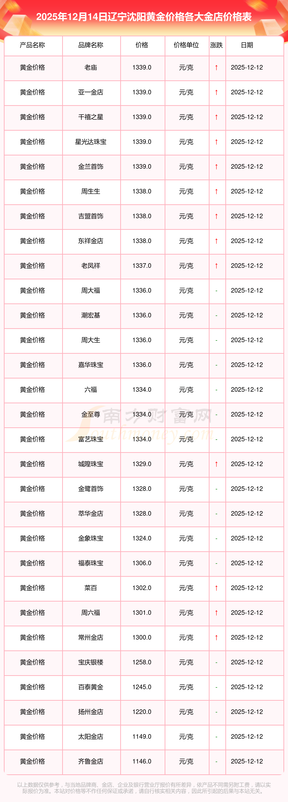 以上数据仅供参考,与当地金店有所差异,请以实际价格为准。