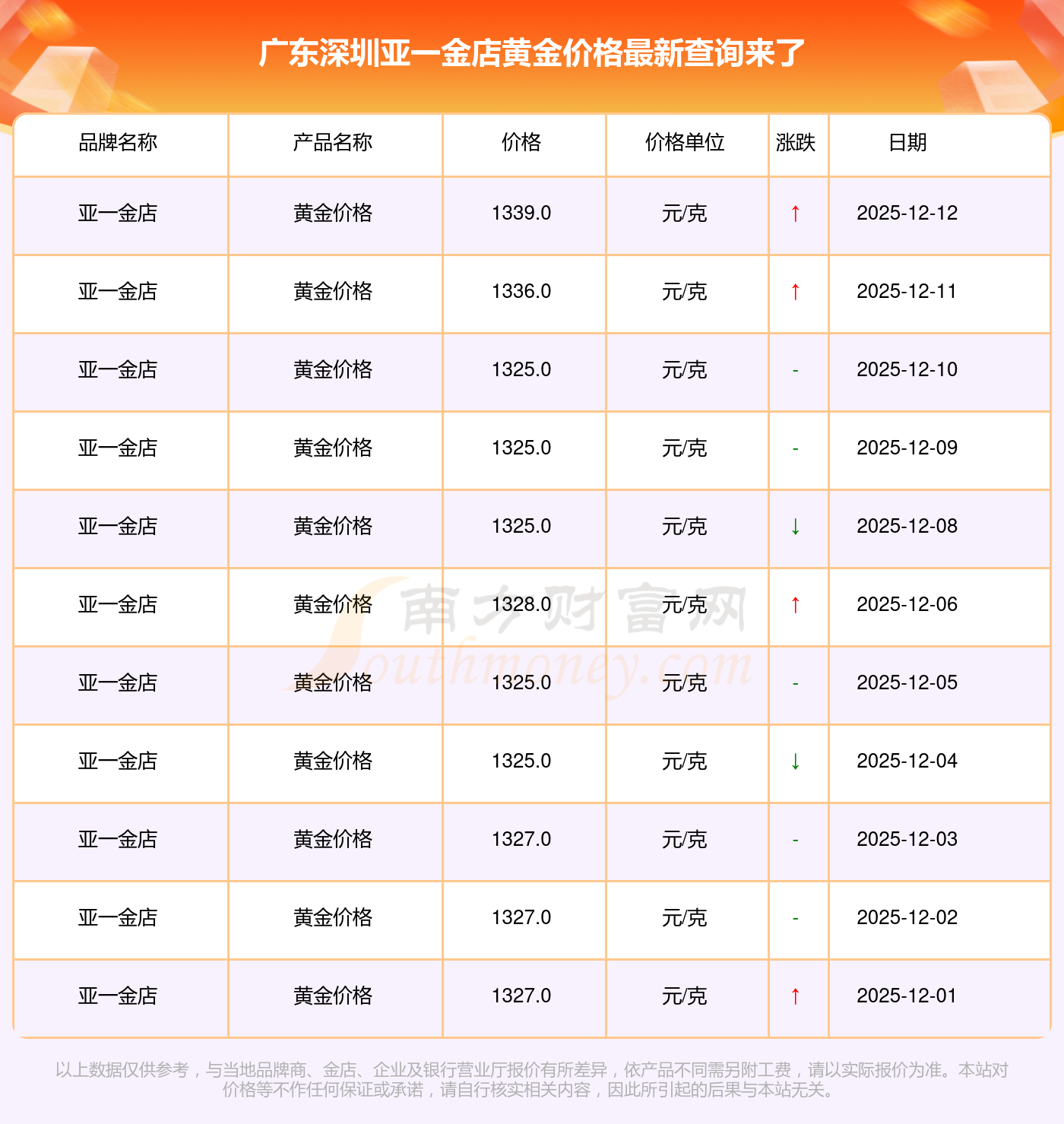 以上黄金价格相关数据由南方财富网整理提供,仅供参考。