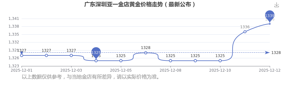 今日广东深圳亚一金店黄金价格为1339.0元/克。