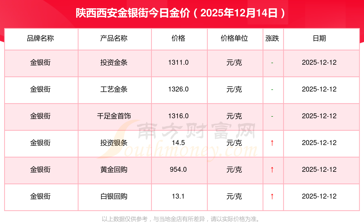 2025年12月14日陕西西安金银街黄金按克计价,现在多少钱一克?黄金价格1336.0元/克,铂金价格681.0元/克,黄金价格1337.0元/克,铂金价格650.0元/克,黄金价格1339.0元/克,铂金价格600.0元/克,黄金价格1338.0元/克,铂金价格681.0元/克,饰品金价(内地)1336.0元/克,黄金饰品(香港)47410.0,铂金价格(香港)19550.0。