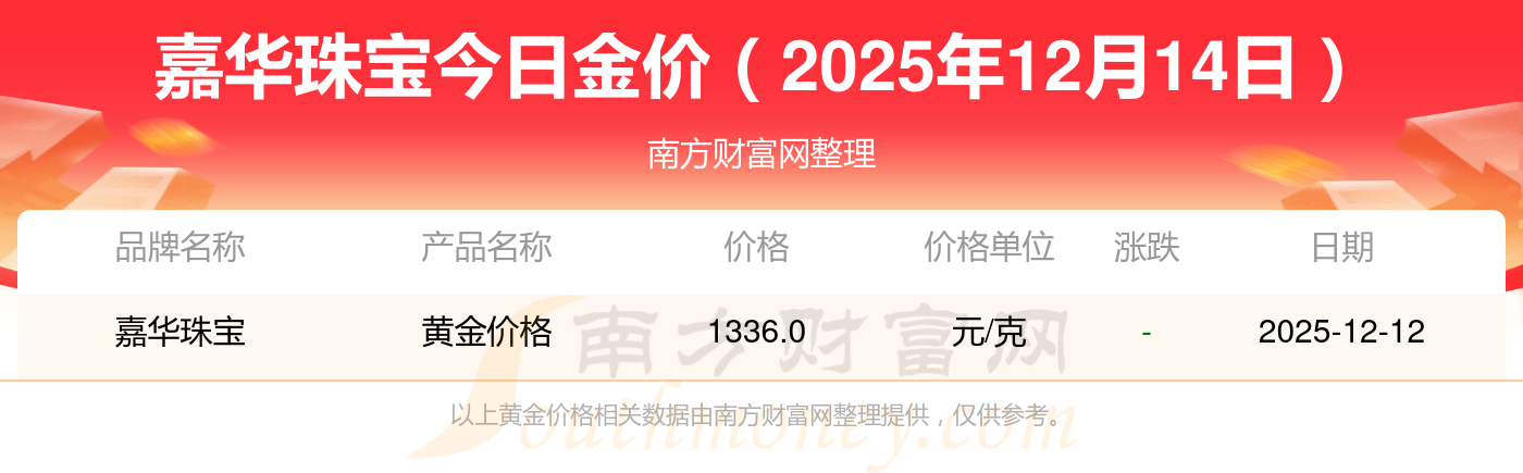 2025年12月14日嘉华珠宝金条多少钱1克 现在东莞嘉华珠宝黄金价格查询