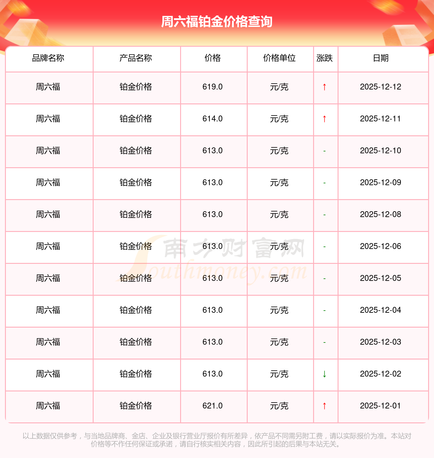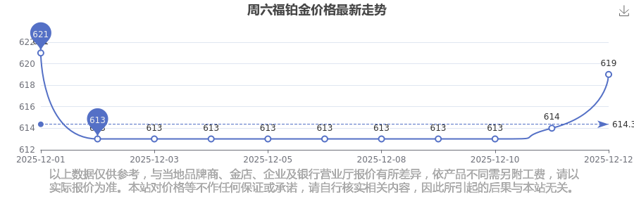 今日周六福铂金价格最新价格为619.0元/克。