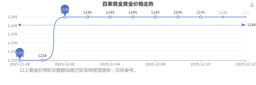 2025年12月14日百泰黄金黄金价格最新为1245.0元/克。