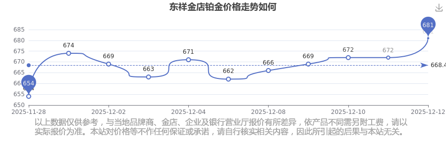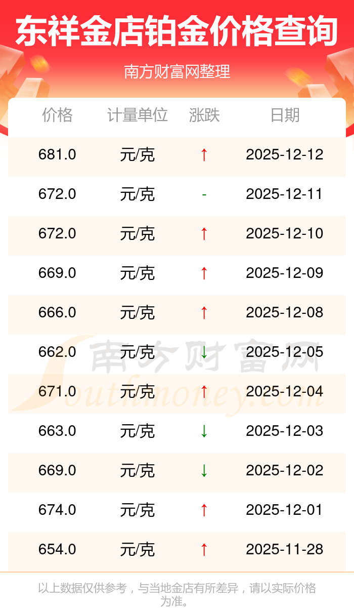 2025年12月14日东祥金店铂金价格最新为681.0元/克。