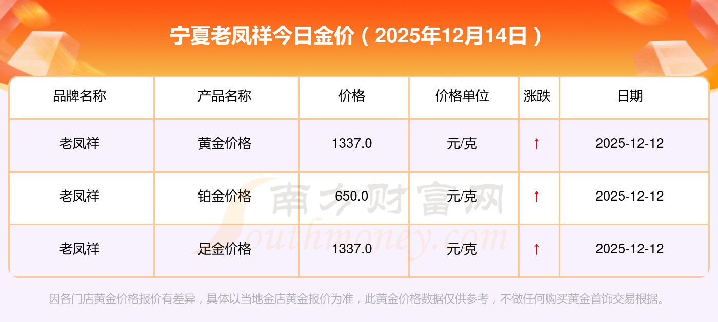2025年12月14日2025今日金价查询表_今日宁夏老凤祥金价表一览