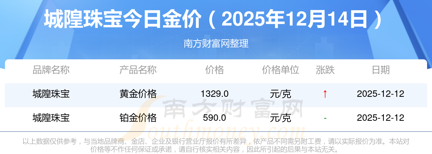 城隍珠宝今日金价多少钱一克