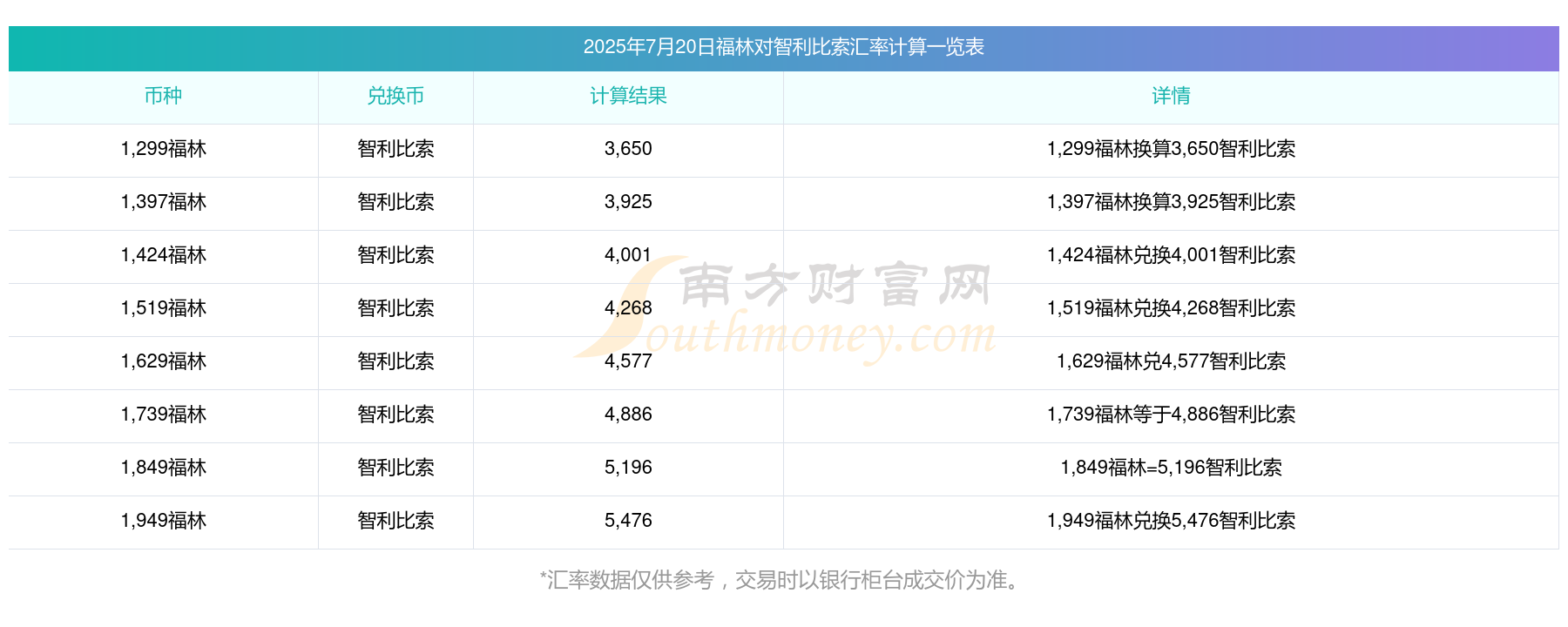 南方财富网为您提供福林对智利比索汇率最新价格详情。