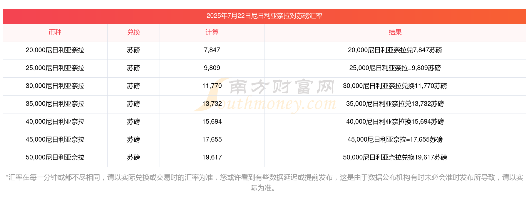 今日实时汇率:尼日利亚奈拉对苏磅换算多少?7月22日