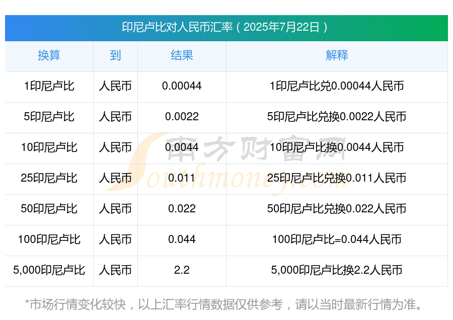 今天25汇率兑换 | 将印尼卢比转换为人民币汇率多少? 2025-7-22