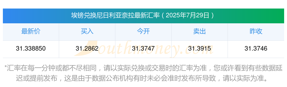 今日100埃镑兑换尼日利亚奈拉多少2025/7/29 _外汇行情