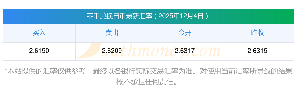 菲律宾比索与日元汇率转换?12-410比索对多少日元?