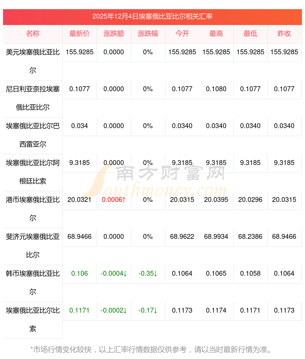 2025年12月4日埃塞俄比亚比尔相关汇率查询