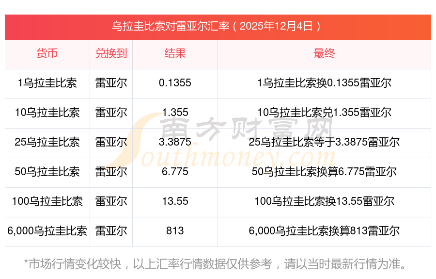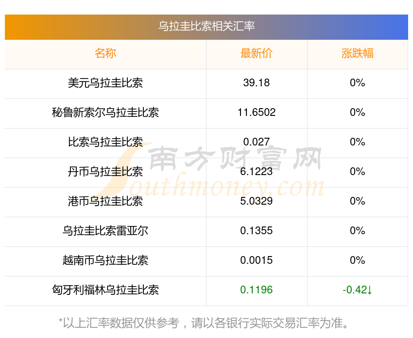 南方财富网为您提供乌拉圭比索对雷亚尔汇率最新价格详情。