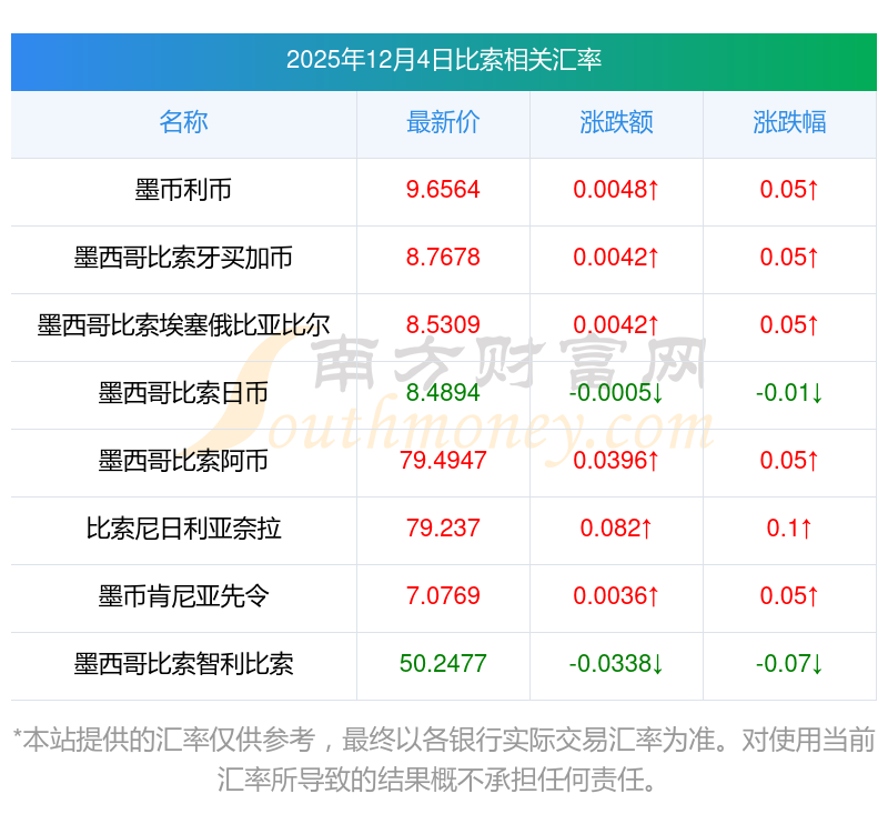 南方财富网为您提供比索对哥伦比亚比索汇率最新价格详情。