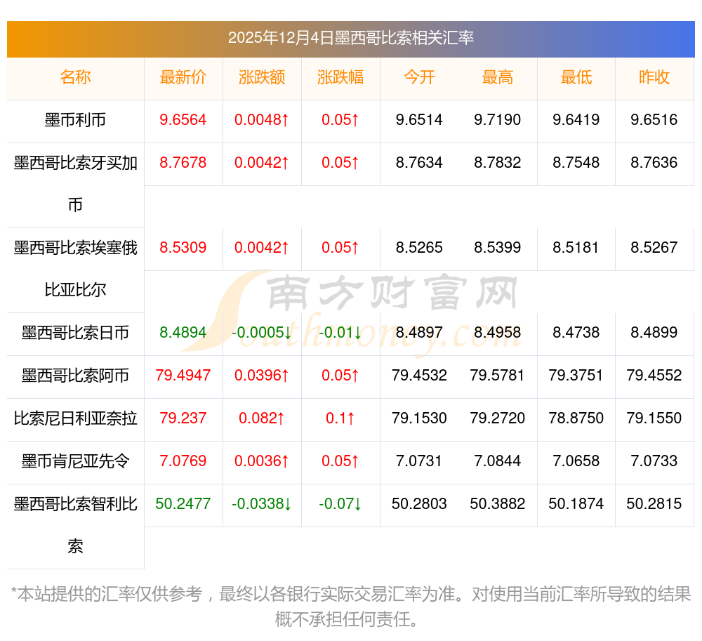 2025年12月4日墨西哥比索相关汇率查询