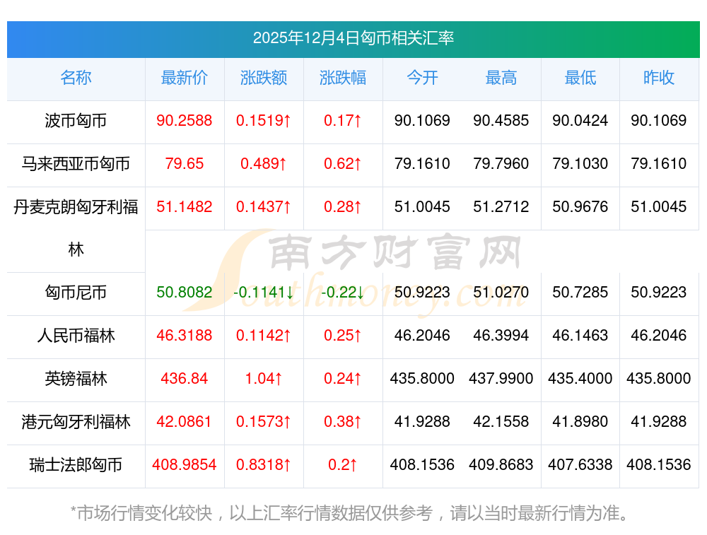 2025年12月4日匈币相关汇率查询