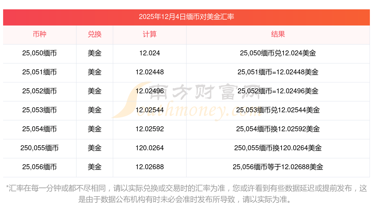 南方财富网为您提供缅币对美金汇率最新价格详情。