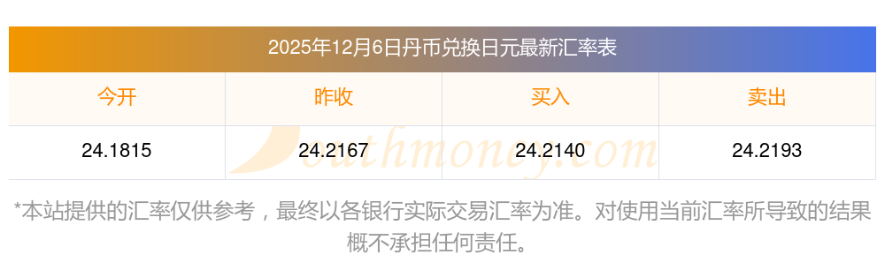 今日丹麦克郎汇率调整:1丹麦克郎等于多少日元?2025-12-06