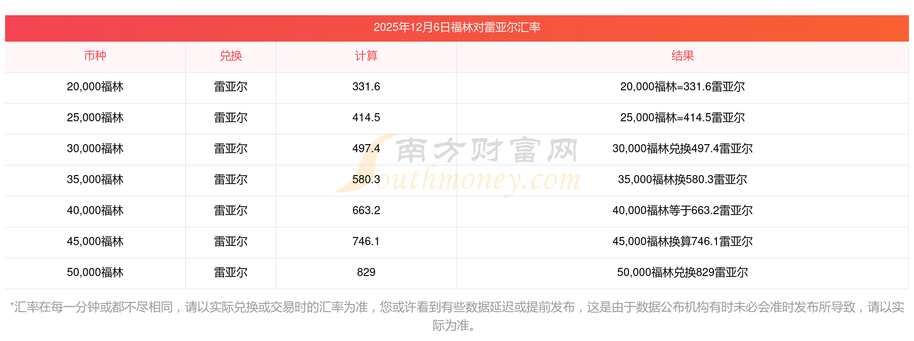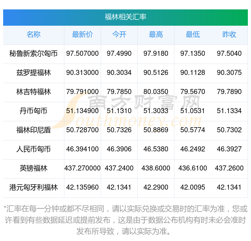 南方财富网为您提供福林对雷亚尔汇率最新价格详情。