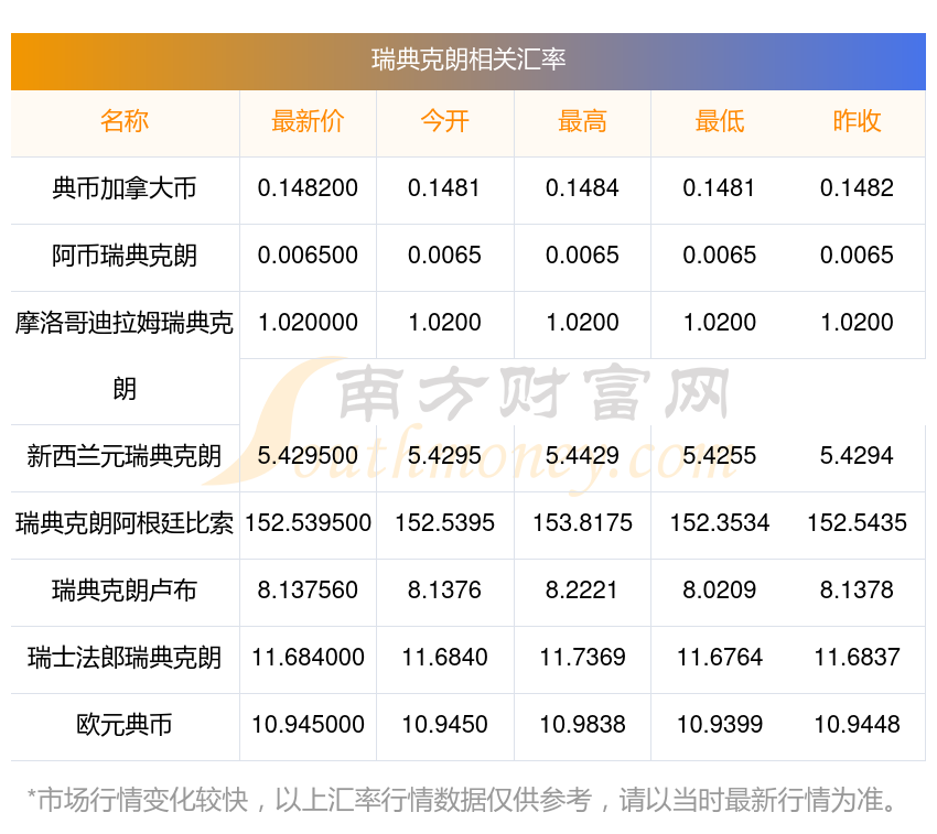 南方财富网为您提供瑞典克朗对卢布汇率最新价格详情。