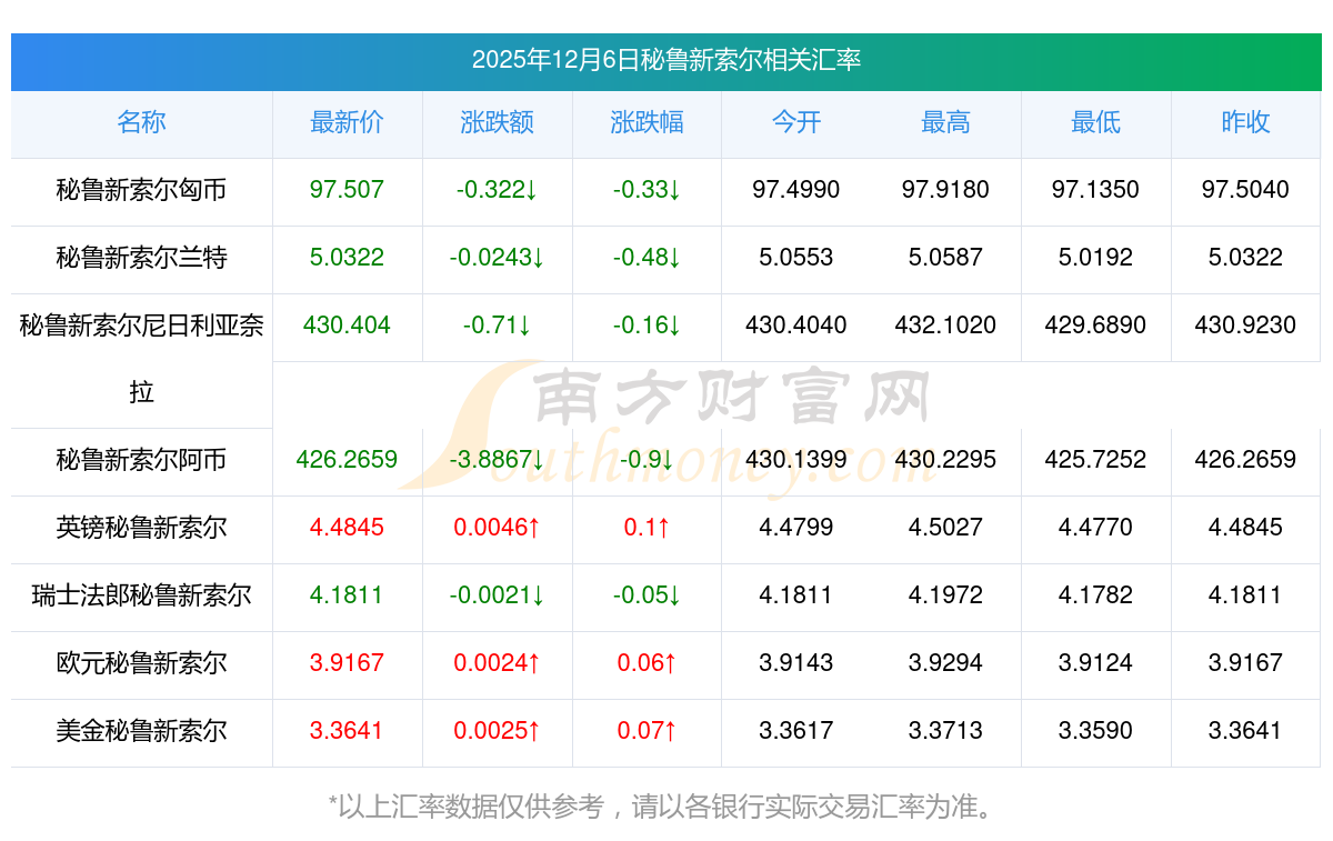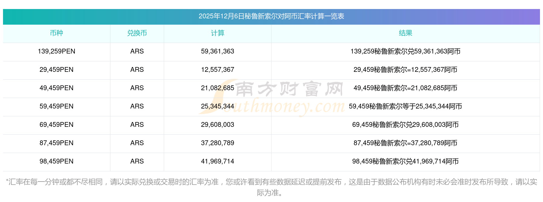 今天购汇查询:500秘鲁新索尔对阿币汇率多少?2025年12月6日