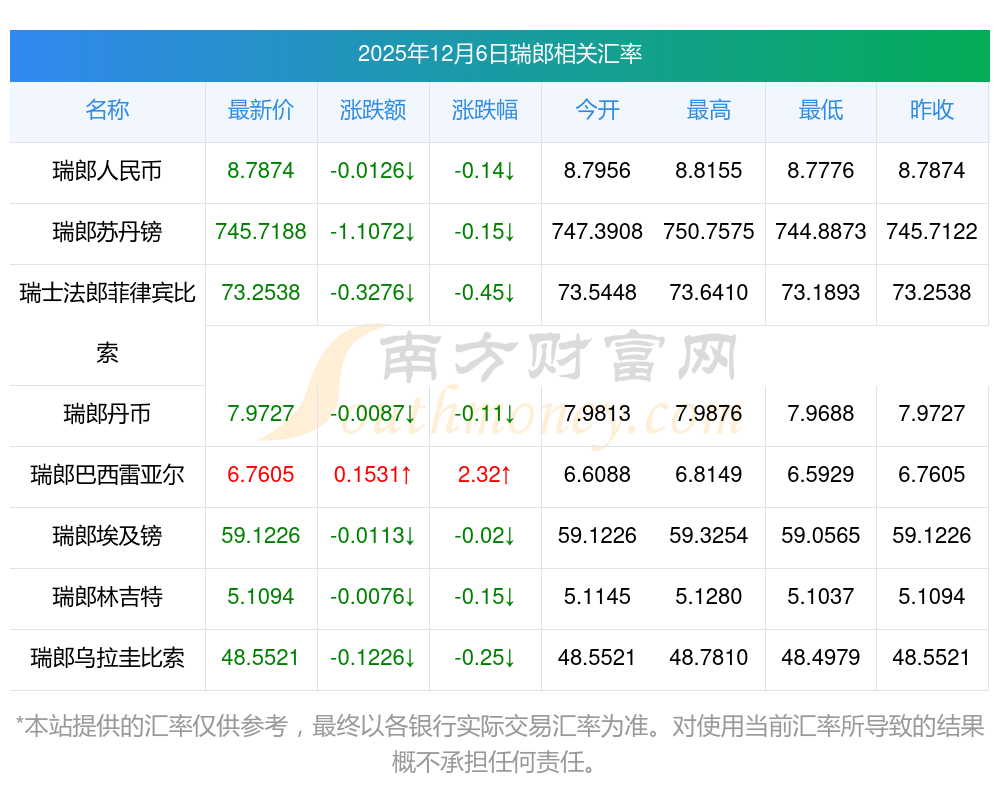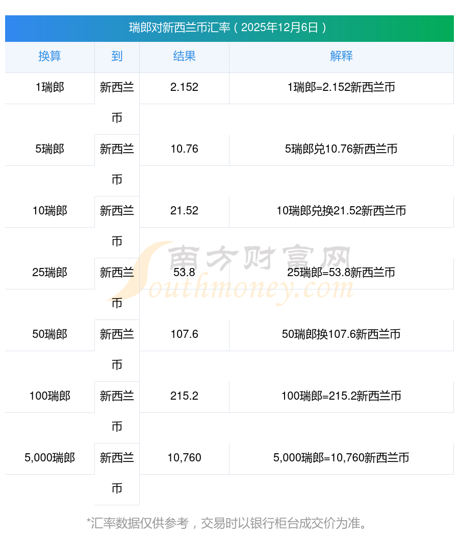2万瑞郎购汇新西兰币是多少_汇率价格 2025-12-6