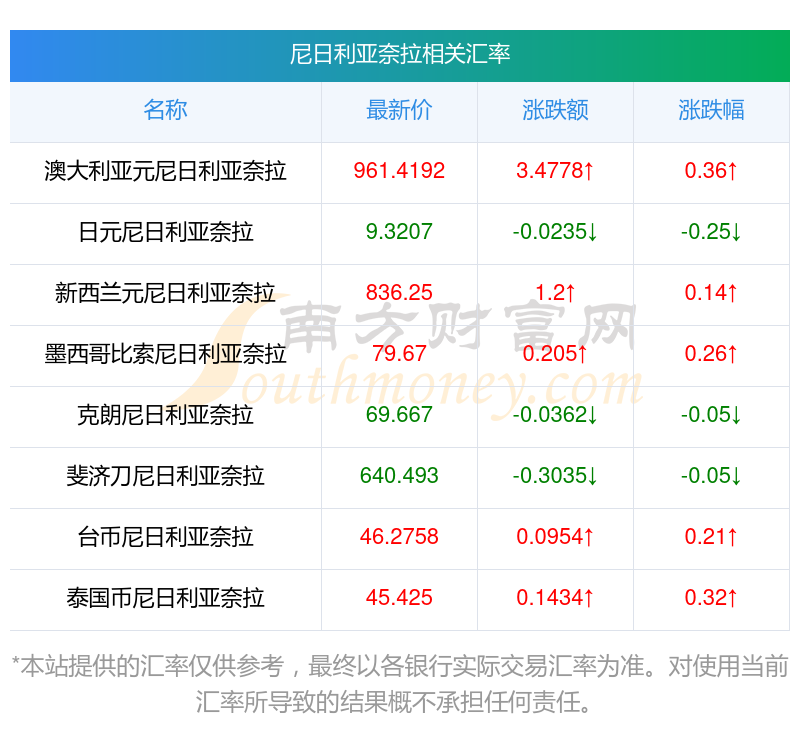 2025年12月6日尼日利亚奈拉相关汇率查询