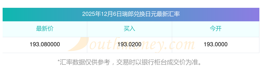 现在瑞士法郎对日元汇率多少?2025/12/06