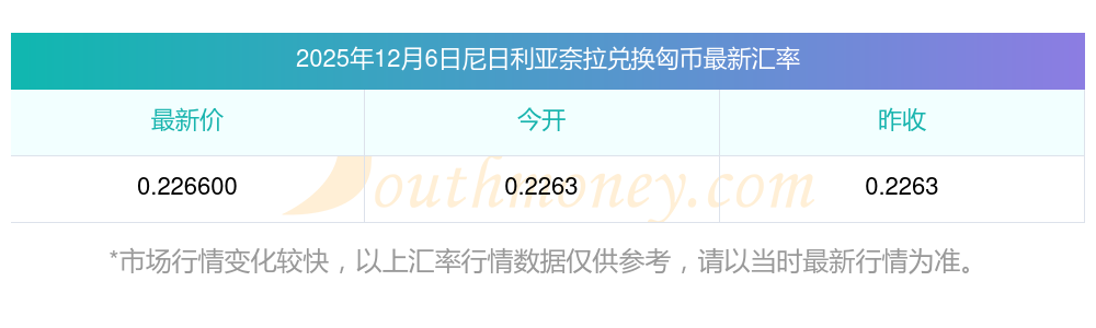 今日尼日利亚奈拉汇价:2025年12月6日27尼日利亚奈拉兑匈币汇价一览表