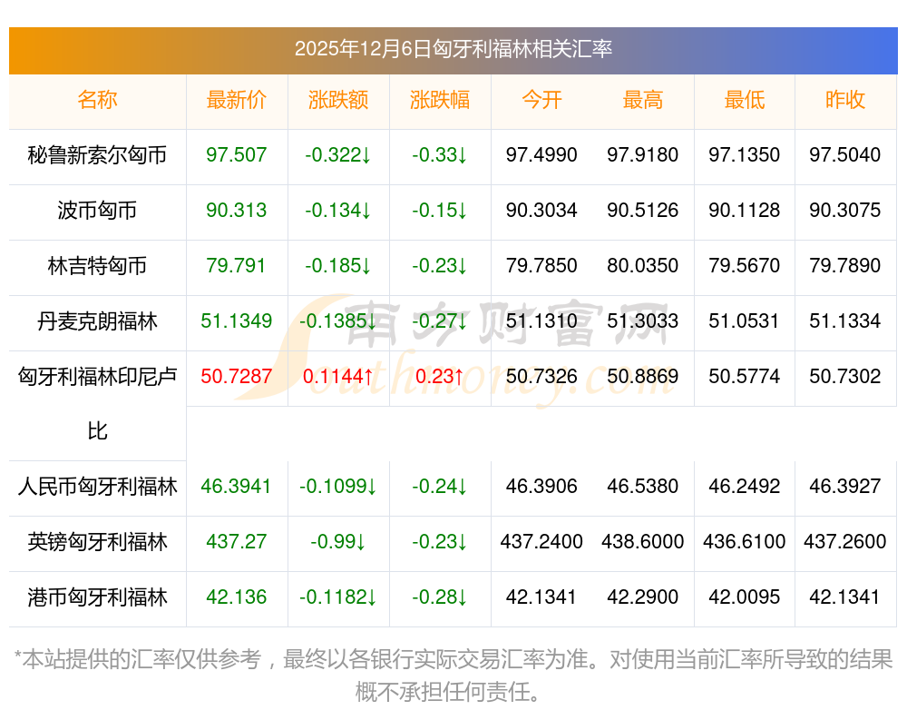 根据2025年12月6日汇率,匈牙利福林兑换新西兰币汇率最新0.005279,今开0.0053,昨收0.0053,最高0.0053,最低0.0053。
