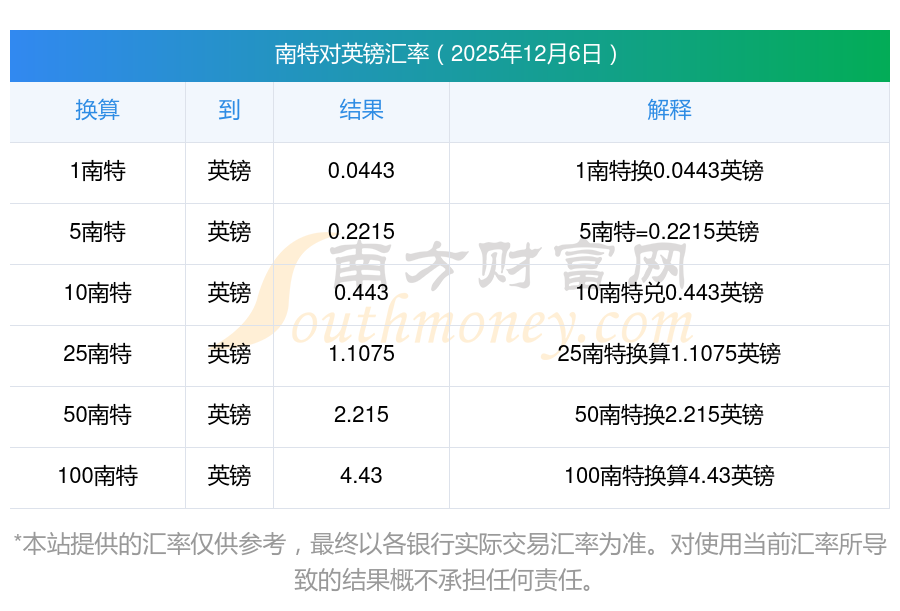 今天南特对英镑汇率_10南特对英镑汇率多少(2025/12/06)