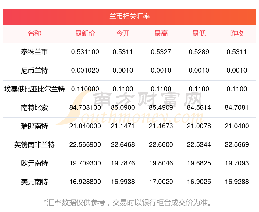南方财富网为您提供兰币对韩元汇率最新价格详情。