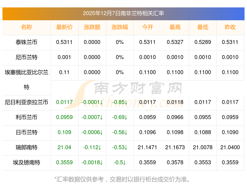2025年12月7日今天南非兰特兑马来西亚币实时汇率