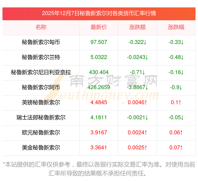 2025年12月7日秘鲁新索尔与智利比索的兑换汇率计算如下: