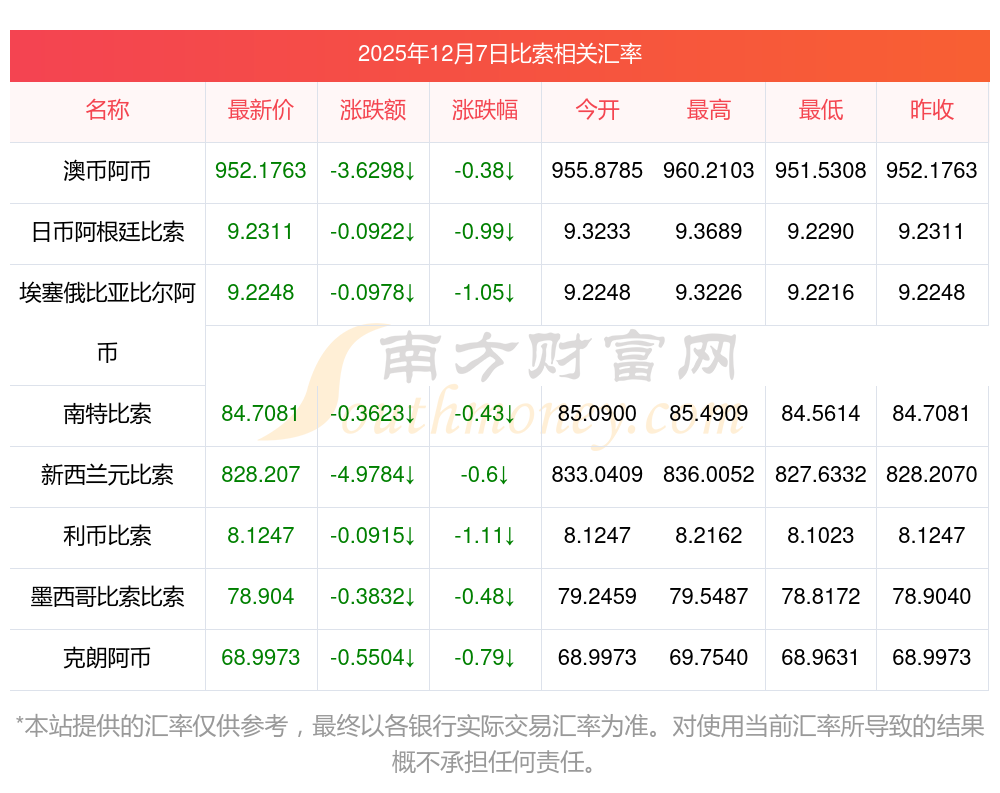 2025年12月7日比索兑换日元最新汇率:0.108400,今开:0.1073,昨收:0.1084,最高:0.1084,最低:0.1067。