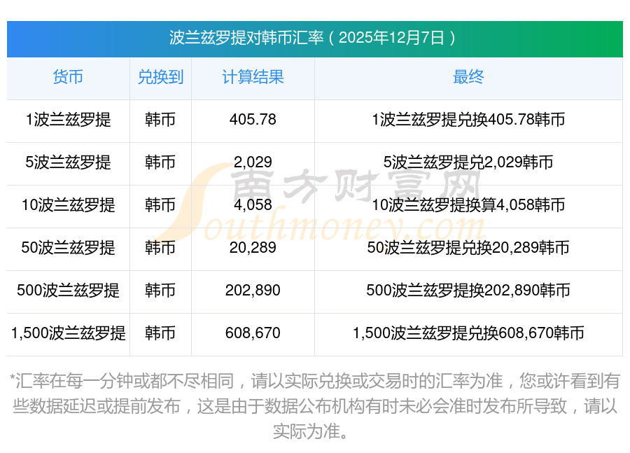 今天13波兰兹罗提兑换韩币汇率计算 2025-12-7