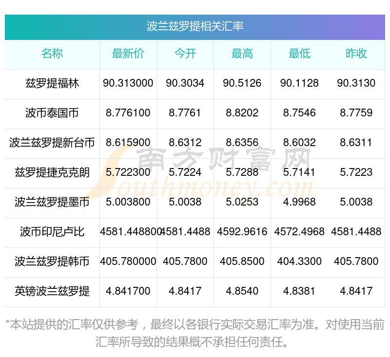 南方财富网为您提供波兰兹罗提对韩币汇率最新价格详情。