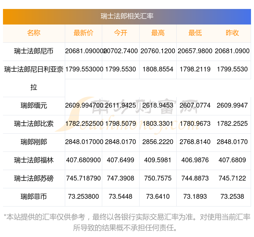 南方财富网为您提供瑞士法郎对林吉特汇率最新价格详情。