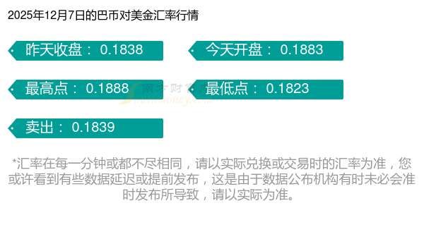2025年12月7日巴币兑换美金汇率是:0.18384