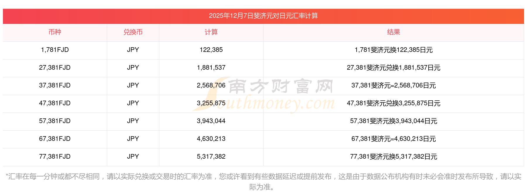 南方财富网为您提供斐济元对日元汇率最新价格详情。