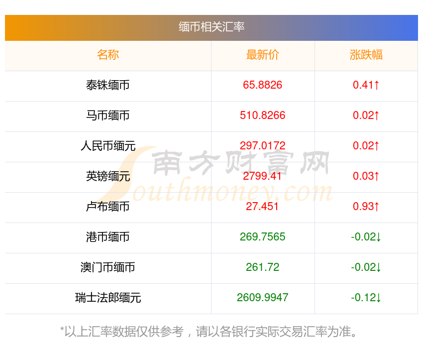 南方财富网为您提供缅币对美元汇率最新价格详情。