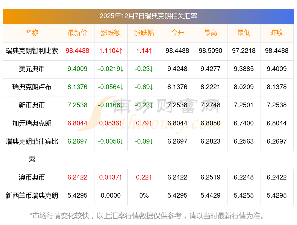 根据2025年12月7日汇率计算,SEK兑换PEN汇率最新价0.357851:今日开价0.3579,昨日收价0.3579,最高价0.3587,最低价0.3565。