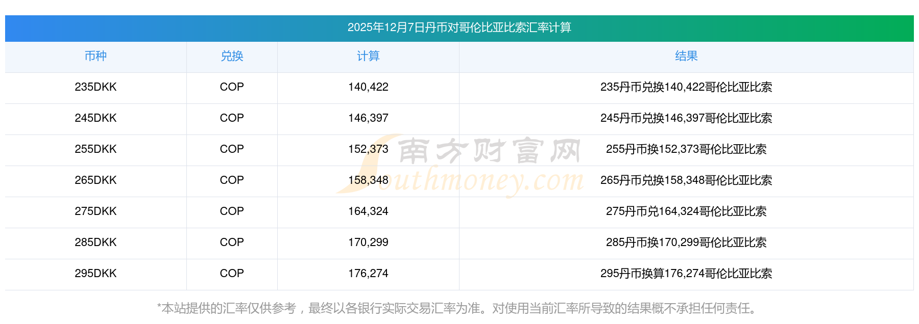 37丹币兑换哥伦比亚比索结汇行情 今天丹币汇率报价查询12-07