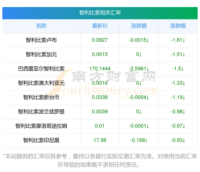 南方财富网为您提供智利比索对新加坡币汇率最新价格详情。
