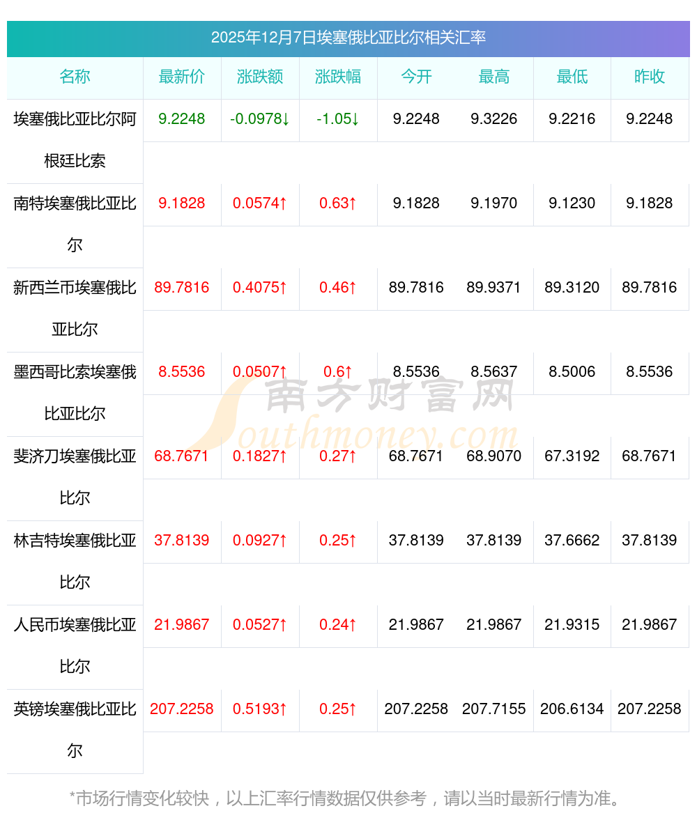 2025年12月7日埃塞俄比亚比尔相关汇率查询