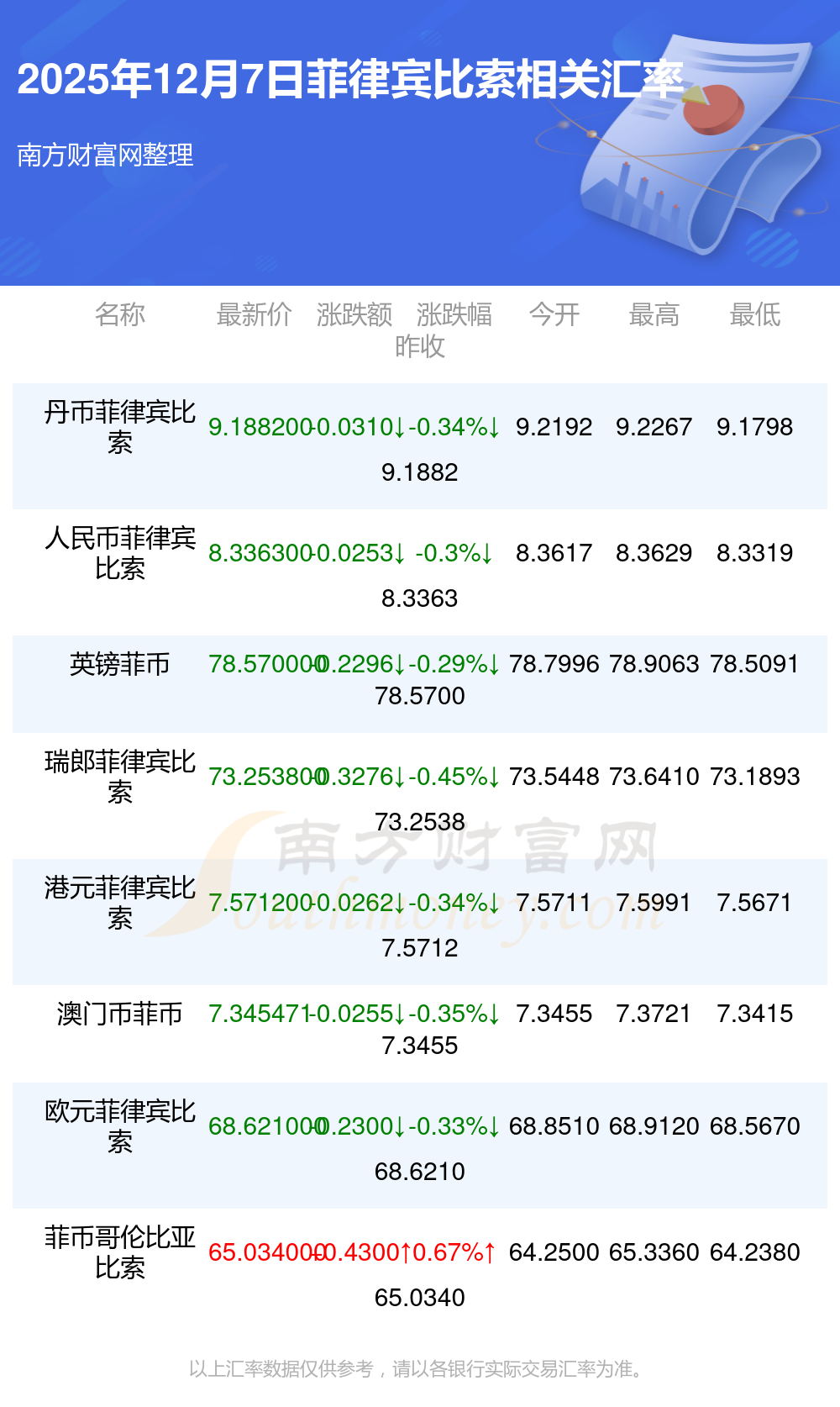 南方财富网为您提供菲律宾比索对英镑汇率最新价格详情。