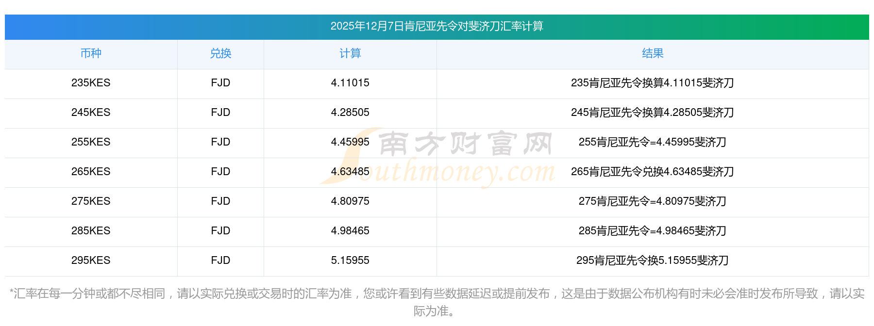 汇率查询 | 7.5万肯尼亚先令转换斐济刀汇率是多少? 2025/12/07