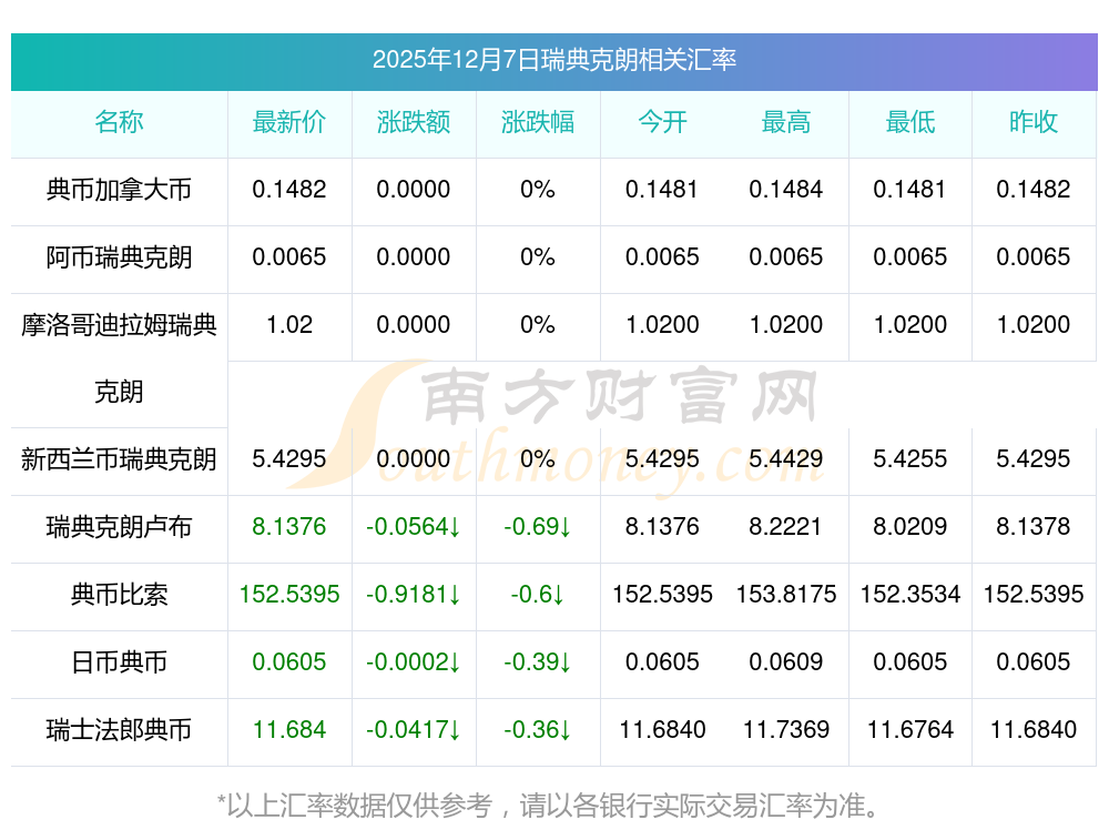 2025年12月7日瑞典克朗相关汇率查询