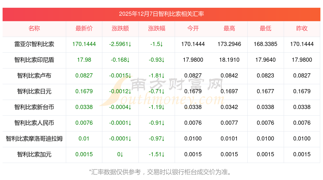 根据今天2025年12月7日汇率计算,CLP兑换MYR汇率最新价0.004442,今开价0.0044,昨收价0.0044,最高价0.0045,最低价0.0044。