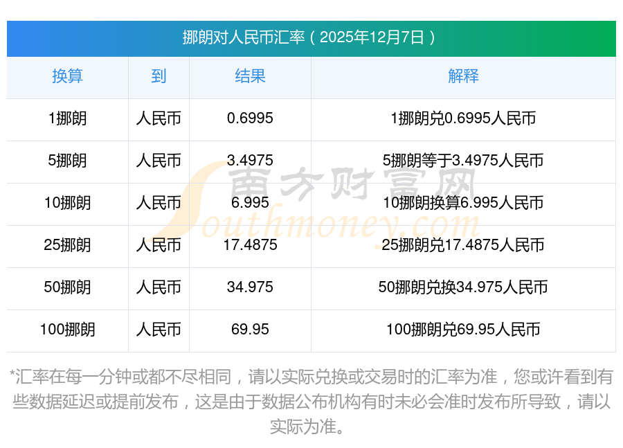 今天126挪朗转换为人民币汇率多少?具体计算方法2025/12/7